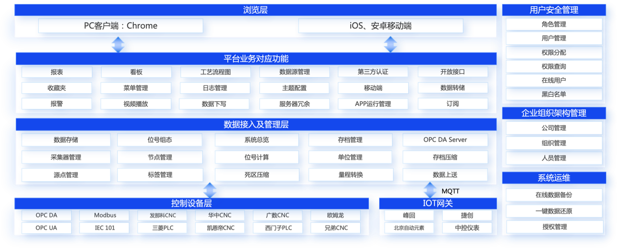 支持多源异构数据采集、可视化开发、业务流程组态、工艺监控和远程协同,部署快、上手快、集成灵活。